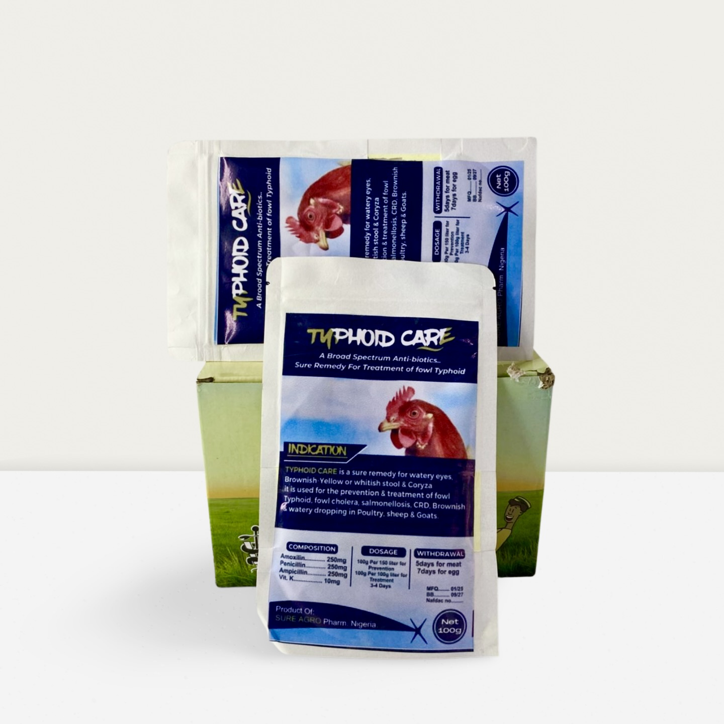 Brownish-Yellow or whitish stool & Coryza it is used for the prevention & treatment of fowl Typhoid, fowl cholera, salmonellosis. CRD, Brownish & watery dropping in Poultry, sheep & Goats.